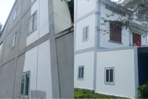 Tường ngoài là nơi chịu tác động trực tiếp từ môi trường mưa, bão, nắng, ...
